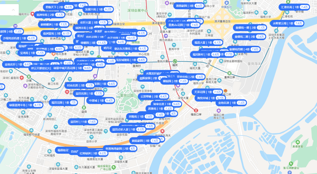 贝壳找房显示,皇岗口岸附近的二手房挂牌均价为7.5万/平,而今年最火热的光明区,4月的二手成交价就已经逼近7万/平。