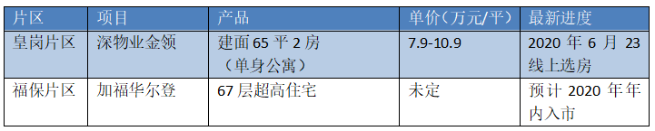 目前片区内的新房项目有两个,深物业金领已于6月底开盘,主推建面65平的小两房。