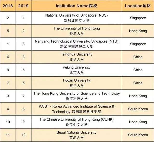 (2019年QS亚洲大学TOP10中,香港占据3席)