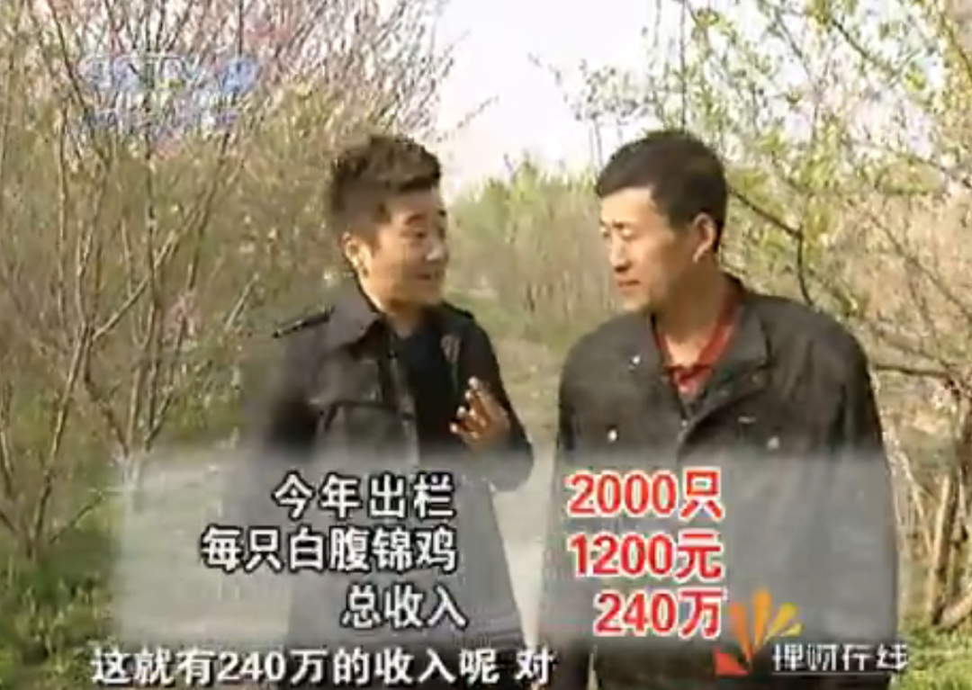 最后,节目主持给老梁算了算账,这一年按照2000只成鸡出栏,每只单价1200元,总收入就能达到240万,那可是十年前。