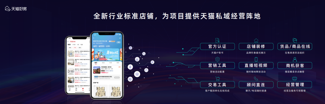 而天猫好房提出的新房开店模式,是要把售楼处全盘搬到天猫上,变成一个个楼盘的专卖店。过去那些只负责信息索引的楼盘详情页,仅是专卖店中展示商品的电子货架。比展示更重要的是,未来,我们要能在专卖店中参加营销活动,签合同买房。