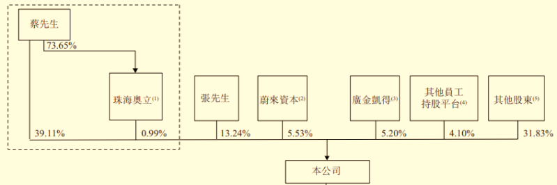 截至目前,蔡东青直接拥有奥动39.11%的股份,并通过员工持股平台珠海奥立持有0.99%的股份,联合创始人张建平则拥有13.24%的股份。
