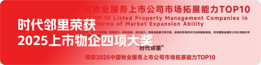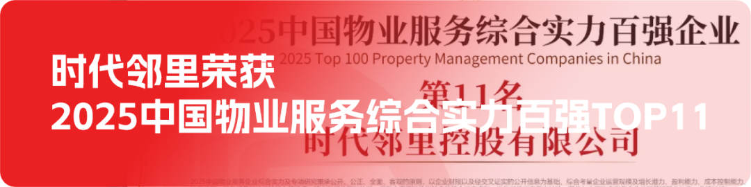12月2日,凭借专业领域优势, 时代邻里荣获2025中国物业高品质服务力百强企业。