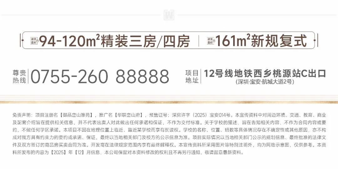 作为西乡近三年首个新规住宅,华联峦山府由上市公司华联控股联手“豪宅专家”恒裕集团,共筑纯粹低密社区。匠筑约94-120㎡精装平层、约161㎡稀缺复式,生活装下满格“质感”,轻松满足家庭成长需求,真正实现“一步到位”的改善进阶。
