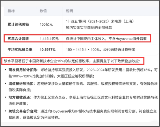 此外,大伟哥还“晒”出了徐汇区授予米哈游的“十四五”高质量发展卓越贡献奖,奖状信息显示,十四五期间,米哈游累计创税达150亿元人民币。