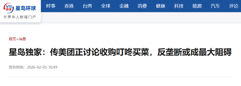 5日上午,《星岛》从消息人士处独家获悉,美团正在紧锣密鼓地推进收购前置仓生鲜即时零售巨头“叮咚买菜”。据称美团方面已与叮咚买菜开展了多轮并购谈判,并进行了多次内部讨论。不过反垄断审查可能成为此次并购最大的障碍。彼时对于收购叮咚买菜一事,《星岛》向美团方面进行求证,但其予以否认。